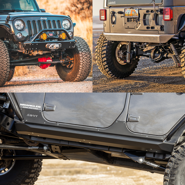 2007-2018 JEEP JKU WRANGLER 6061 ALUMINUM LEGACY ESSENTIALS BUNDLE (FRONT & REAR BUMPERS & ROCK SLIDERS) SAVVY OFFROAD